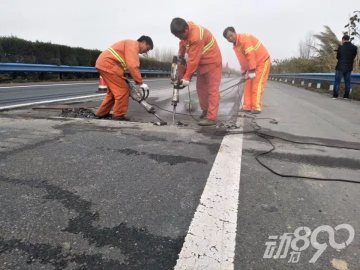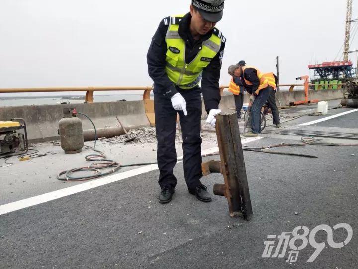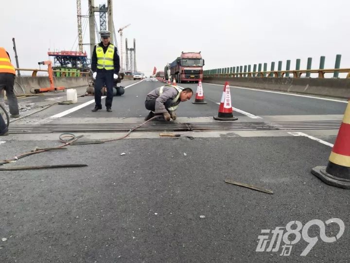 昨天上午,记者跟随高速交警从隆中上高速来到汉江四桥,发现桥面正在半幅封闭施工,现场只有一条车道可以正常行驶。工人们一边挥舞红色旗子,提醒过往车辆提前减速;一边对破损的路面进行开挖。