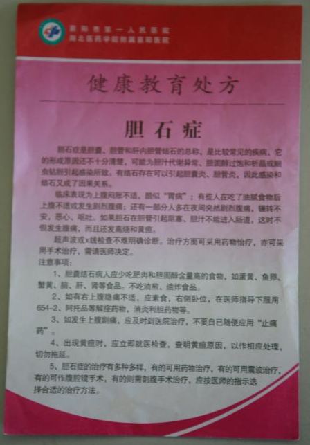 李女士说,她的母亲不喜欢吃早饭,还爱吃肥肉,李女士平时劝说她,老人却不当回事。医生开了这个健康处方,处方中说明了胆囊结石的病人应少吃肥肉和胆固醇含量高的食物,还对其母亲的生活、饮食结构给予了调整建议,帮助她早日康复。