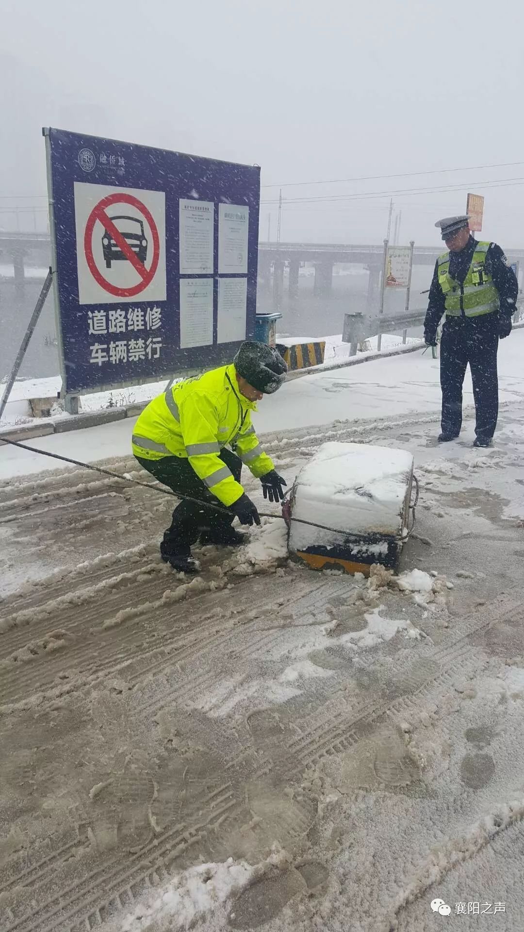 此外,二广、福银高速襄阳段持续暴雪,高速公路各收费站全部关闭,高速交警、路政、养护采用站口分流、警车带道、重车碾压、机械铲雪等措施全力抢通道路。