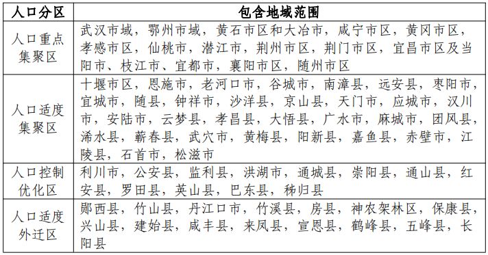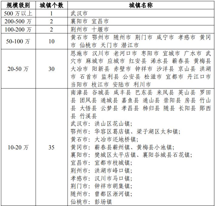这份规划不仅从“人口重点集聚区”“人口适度集聚区”“人口控制优化区”“人口适度外迁区”4方面指出了湖北城镇发展战略分区,还十分详细地列出了全省城镇等级结构,涉及500万人以上城市、200-500万人城市、50-100万人城市等8种规模城镇共781个。
