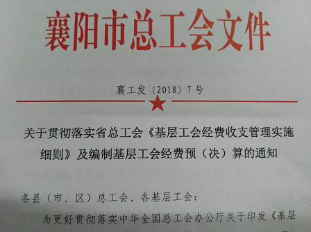 2月9号上午,市总工会对外发布了“关于贯彻落实省总工会《基层工会经费收支管理实施细侧》及编制基层工会经费预算的通知”。通知对基层工会组织使用工会经费为职工发放福利的具体操作进行了明确。