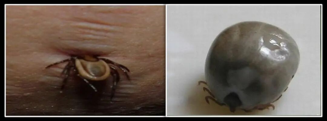 蜱叮咬人及吸饱血后实图