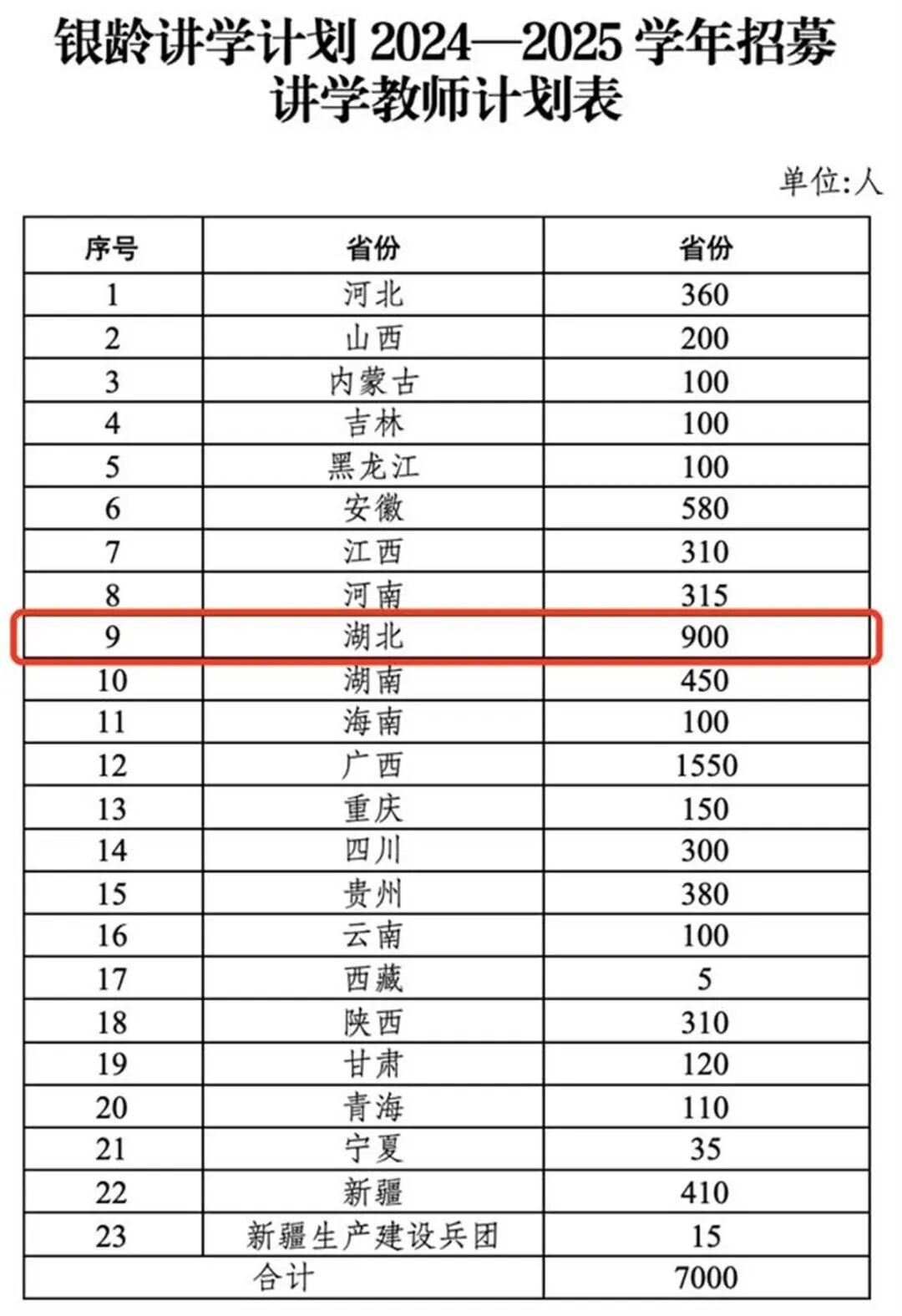 教育部、财政部日前联合印发《关于做好2024年银龄讲学计划有关实施工作的通知》(以下简称《通知》),根据国家银龄教师行动计划整体部署,今年计划招募7000名银龄讲学教师,发挥优秀退休教师引领示范作用,支持农村地区教育发展。其中湖北将招募900名。