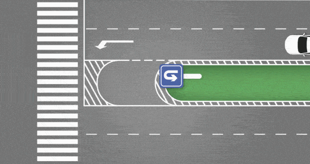 在路口靠近虚线一侧的车辆无须经过人行横道或进入路口,在不影响对向来车的情况下,可以不等绿灯直接掉头。