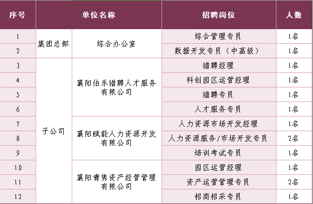 襄阳人才集团有限公司面向社会公开招聘人员公告