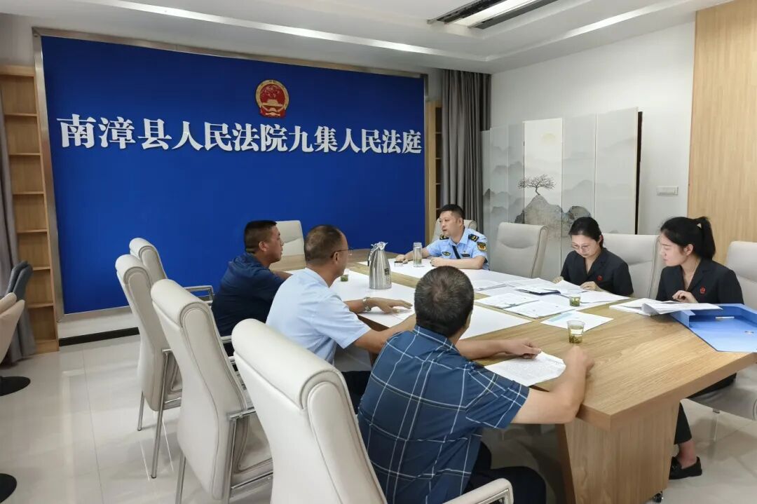 就案件相关情况,南漳县人民法院知识产权审判庭法官与南漳县市场监管局裁决组成员进行了探讨。