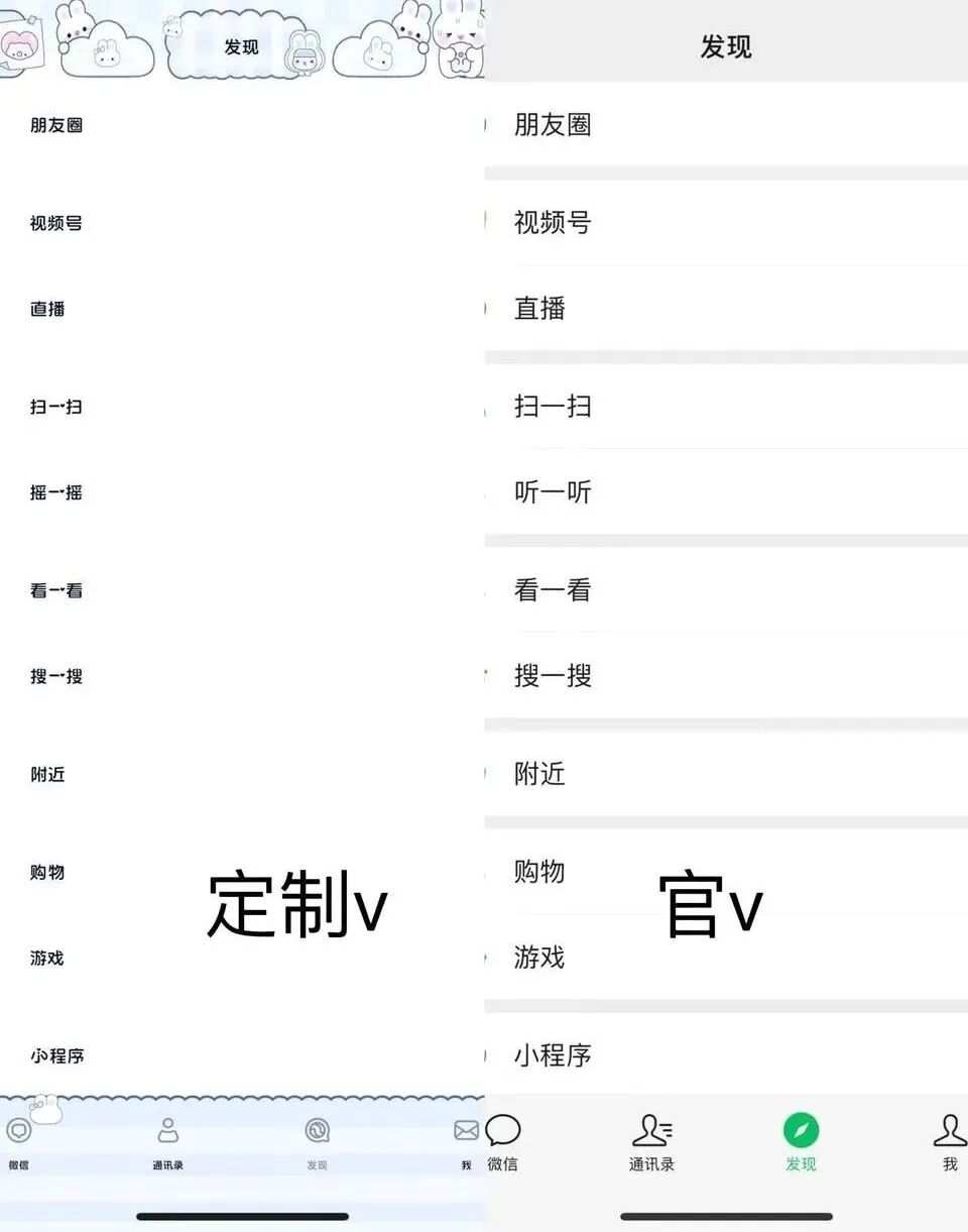 所谓“定制V”,通常是指由微信官方之外的开发者,为增加微信额外功能开发的相关应用程序或工具。用户在使用原有微信账号登录后,不仅可以正常应用微信本身的功能,也可以像QQ一样更换个性化主题、字体、气泡等,让页面更“好看”。