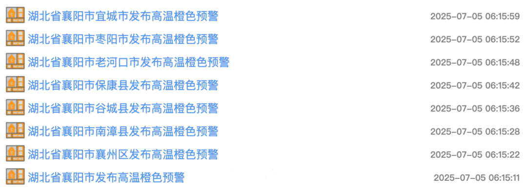 本周以来,高温天气持续,高温预警信号也从黄色升级为橙色。今天,襄阳连发多条高温橙色预警。