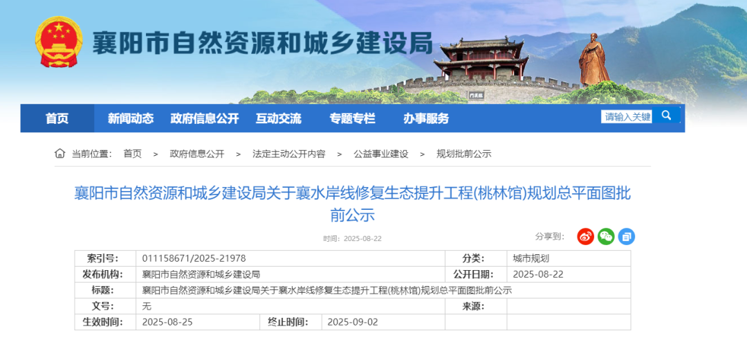 襄阳市自然资源和城乡建设局网站发布