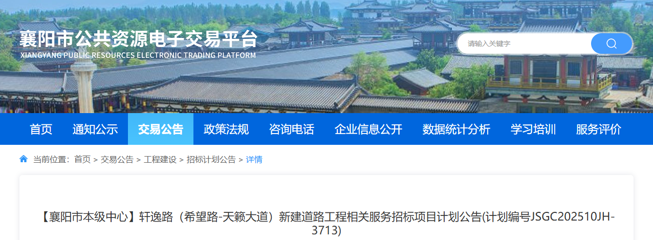 10月9日,襄阳市公共资源电子交易平台发布轩逸路(希望路-天籁大道)新建道路工程相关服务招标项目计划公告。 公告显示,计划招标时间为2025年11月,建设地点为高新区。 来源:襄阳市公共资源电子交易平台 编辑:孟子君
