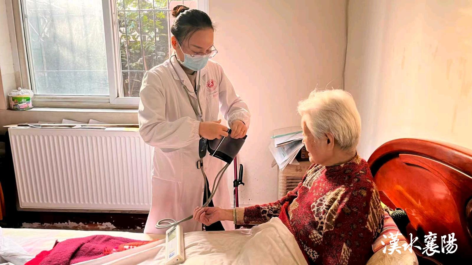 “李医生,你们来了!”82岁的李庆云老伴郭新赐热情地将医护人员迎进屋内。医生团队随即来到李阿姨床旁,一边熟练地为她测量血压,一边细致询问:“阿姨,最近感觉怎么样,有没有头晕?”