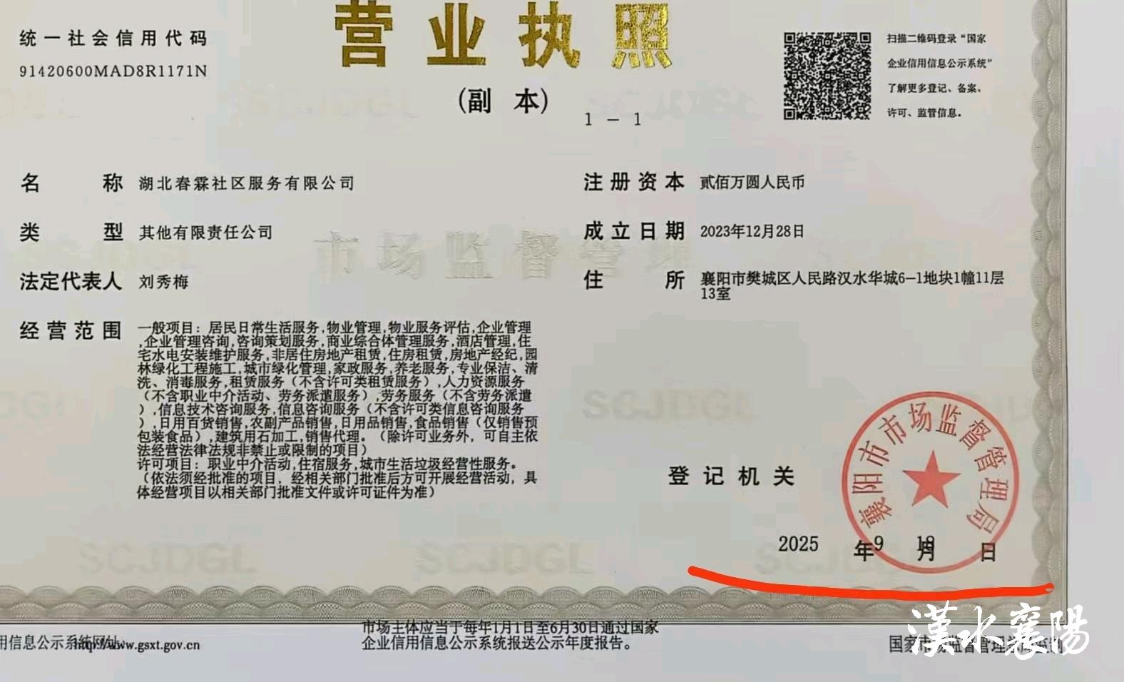 2025年9月,湖北春霖社区服务有限公司获准成立。这家由湖北襄源物业管理有限公司更名而来的企业,成为本市首家以“社区服务”命名的物业公司。从“管理”到“服务”,一词之变,背后是一场关乎基层治理模式、业主权益保障和行业生存发展的深刻变革。