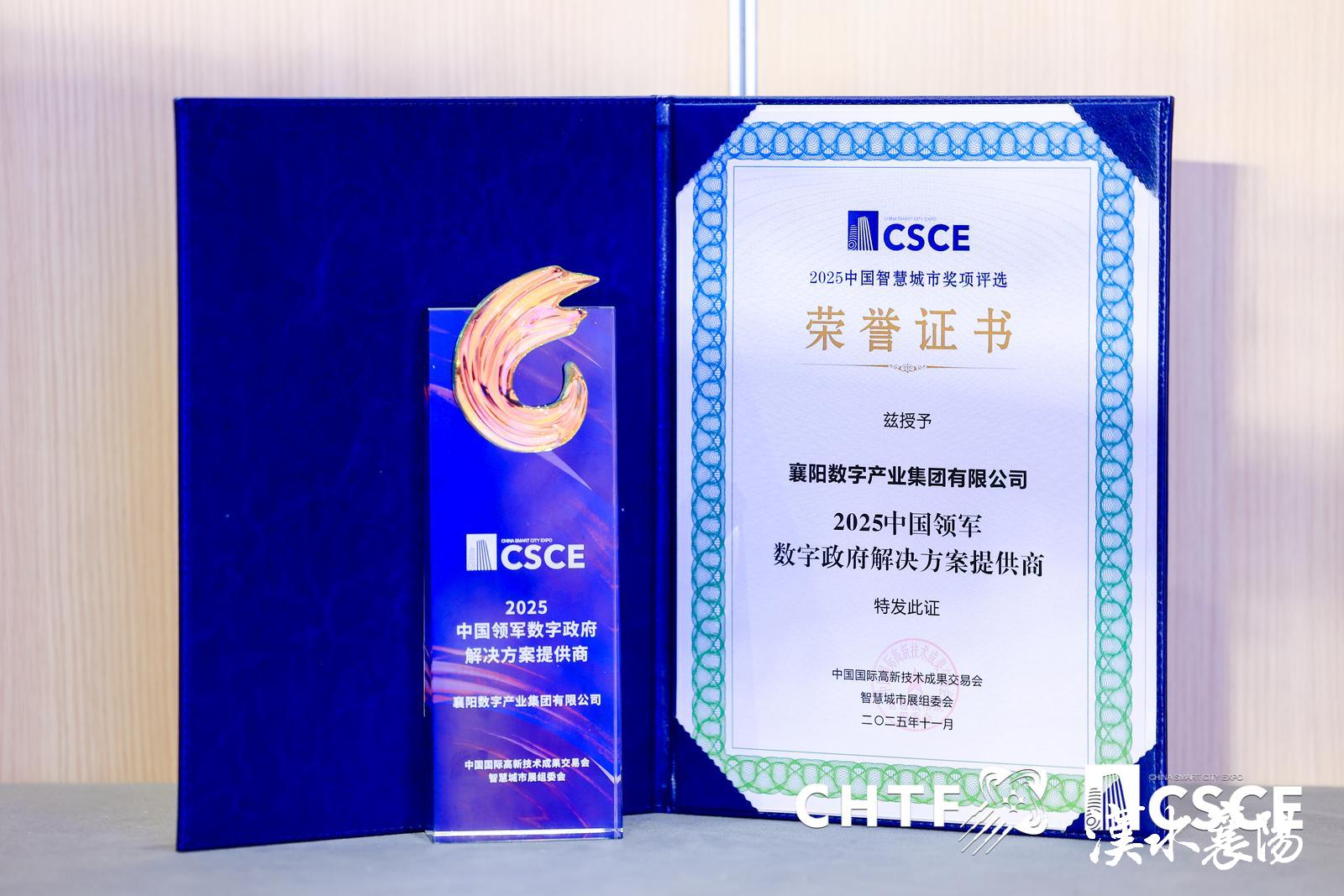 11月18日,记者从汉江国投旗下襄阳数字产业集团有限公司(以下简称襄阳数产集团)了解到,该公司在第二十七届中国国际高新技术成果交易会“2025亚太智慧城市评选颁奖典礼”上,获评“2025中国领军数字政府解决方案提供商”,为襄阳数字产业发展再添荣誉。