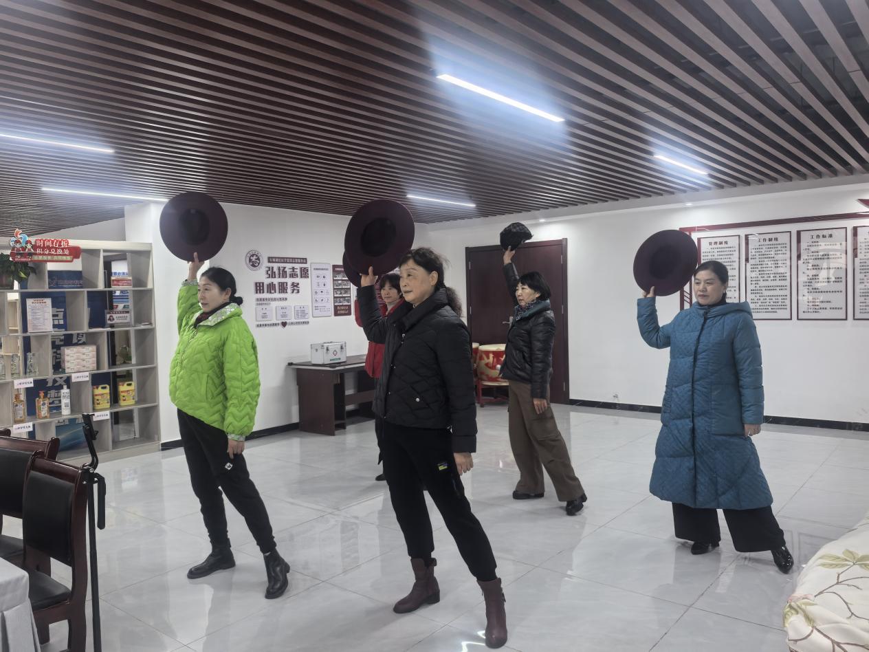 近日,车城湖社区新时代文明实践站活动室内,社区舞蹈队正热情排练时尚帽子舞,展现了退休老人积极向上的精神风貌。排练现场,队员们手持帽子、身着舞服,伴随音乐翩翩起舞,动作轻盈舒展。
