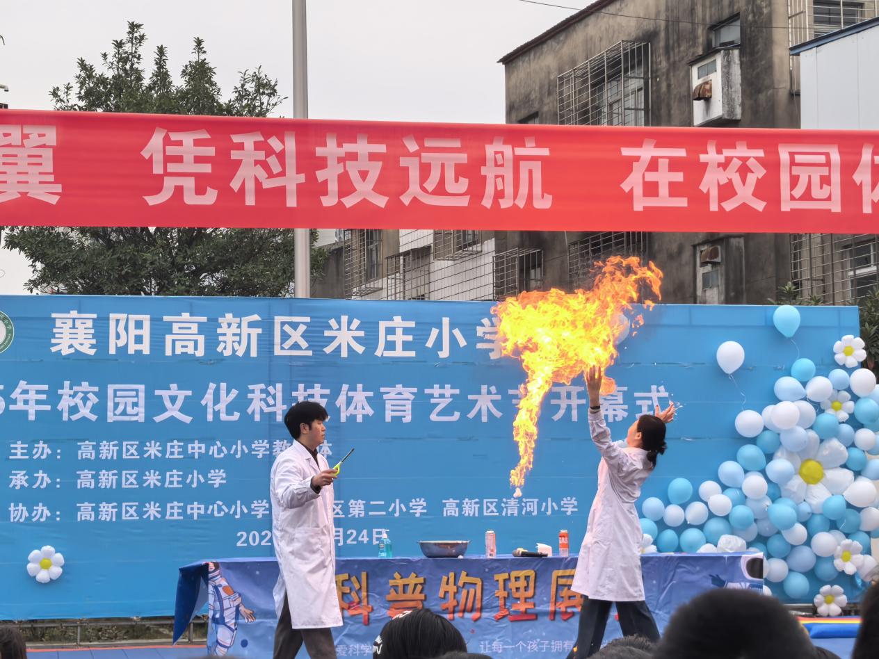 近日,米芾社区联合米庄小学共同举办“文化为翼·科技领航”校园文化科技体育艺术节,为学生带来一场知识与趣味并重的多元体验。活动当天,学生们通过歌舞、朗诵展现艺术风采;科普人员带来的火焰喷射、干冰烟雾等物理实验,将科学原理生动呈现,激发探索热情。