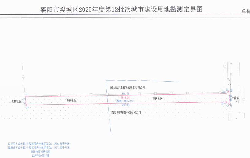 因实施道路项目建设等公共利益需要,樊城区拟征收柿铺街道张桥社区、王伙社区集体土地,共一个地块。拟征收土地地块东起付营路,西至规划柿九路,拟征收土地总面积0.5618公顷。土地用途为城镇村道路用地。