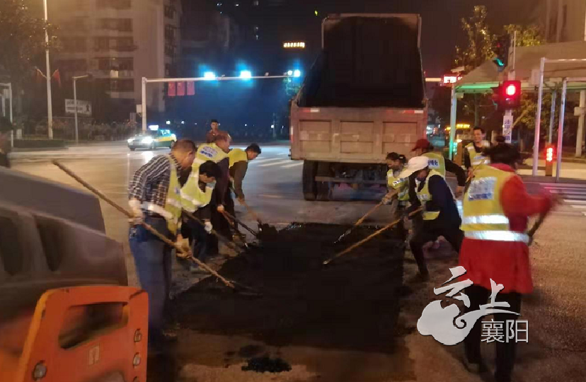 襄马来了!呵护赛道,襄阳路政工人夜间修补
