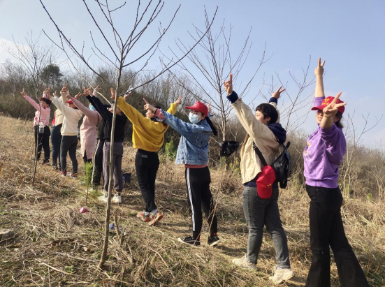 当天上午,大家个个热情高涨,从磨旗山脚下,踏着欢快的步伐向山顶进发。一路上,大家欣赏着大美春光,尽享登山乐趣,欢歌笑语不停,笑声掌声不断,既放松了心情,又激发了活力。