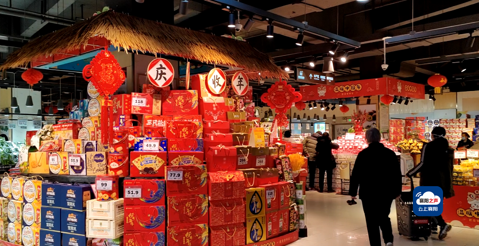 现在整个超市里可以说是"年味儿"十足,除了走亲访友需要的礼品、礼盒外,水果、蔬菜、炒货、糖果等放在显眼位置,不少特色商品更是换上了喜庆的"贺岁装",吸引着不少市民驻足选购,过年的"氛围感"已经拉满。