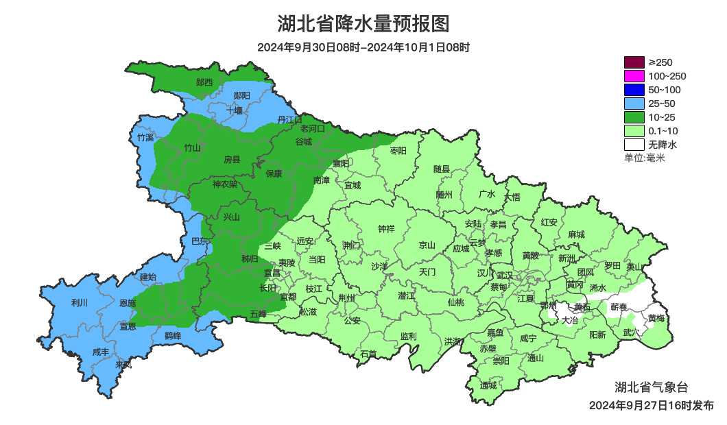 预报来源:湖北省气象台2024年9月27日16时预报