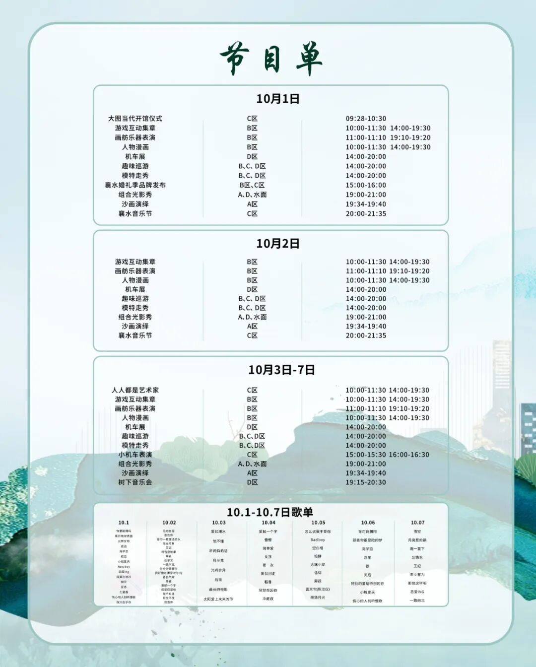 十一假期七天,襄水街也准备了丰富多彩的节目。欢迎广大市民、游客前来休闲娱乐!