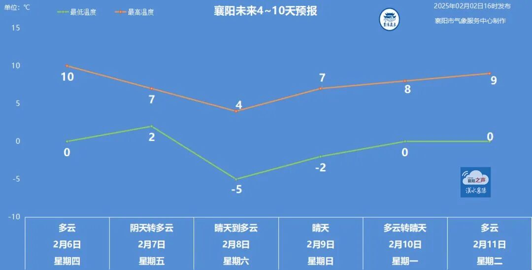 2月3日08时-4日08时大年初六:全省多云到晴天。最高气温10~15℃,最低气温北部-4~0℃、南部0~3℃,偏北风2到3级。