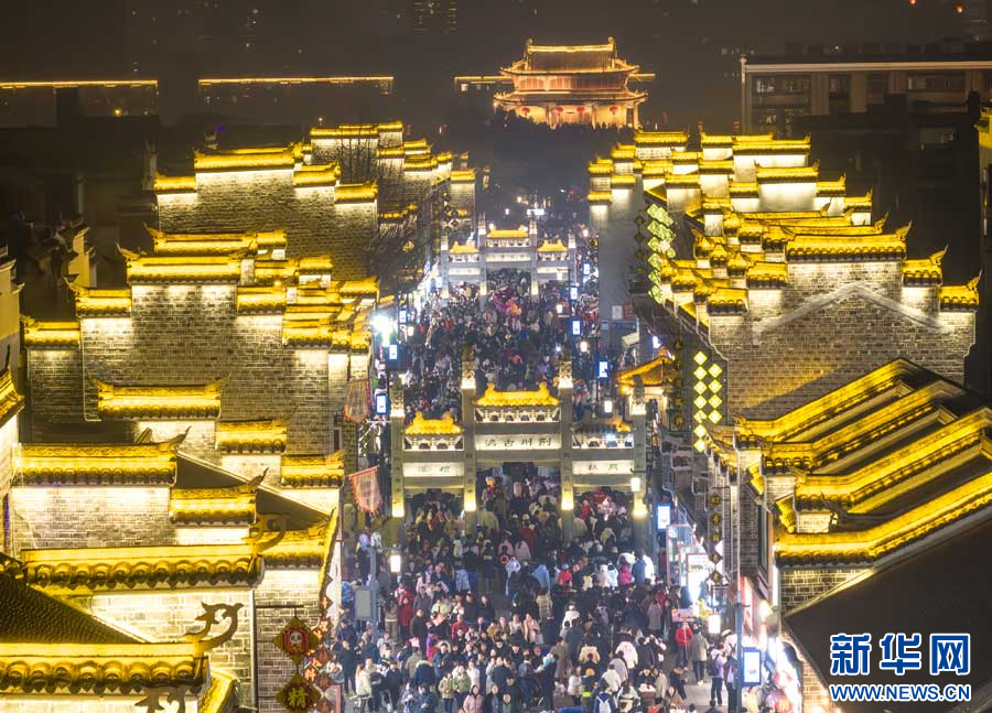 图为1月30日,游客在襄阳古城北街游览。新华网发 杨东 摄