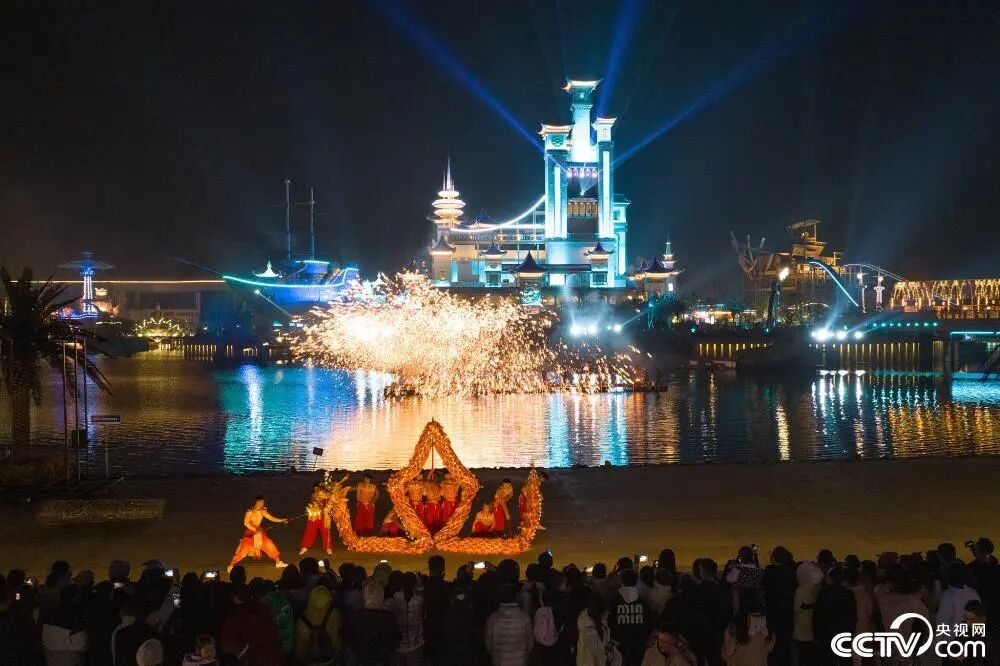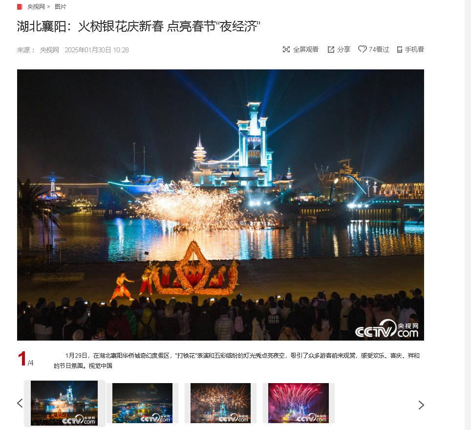 1月29日,央视网聚焦襄阳华侨城奇幻度假区,“打铁花” 表演与灯光秀在春节期间点亮夜空,吸引大批游客。