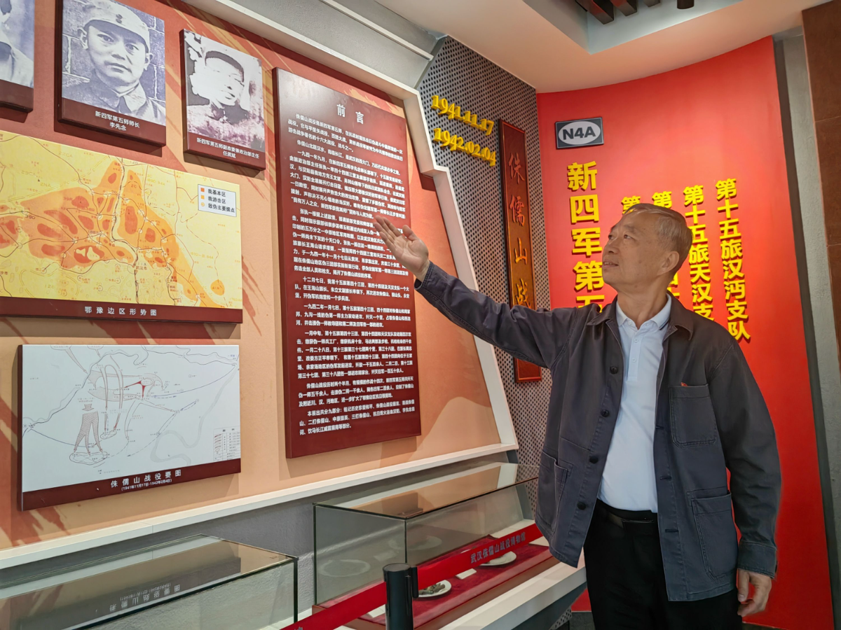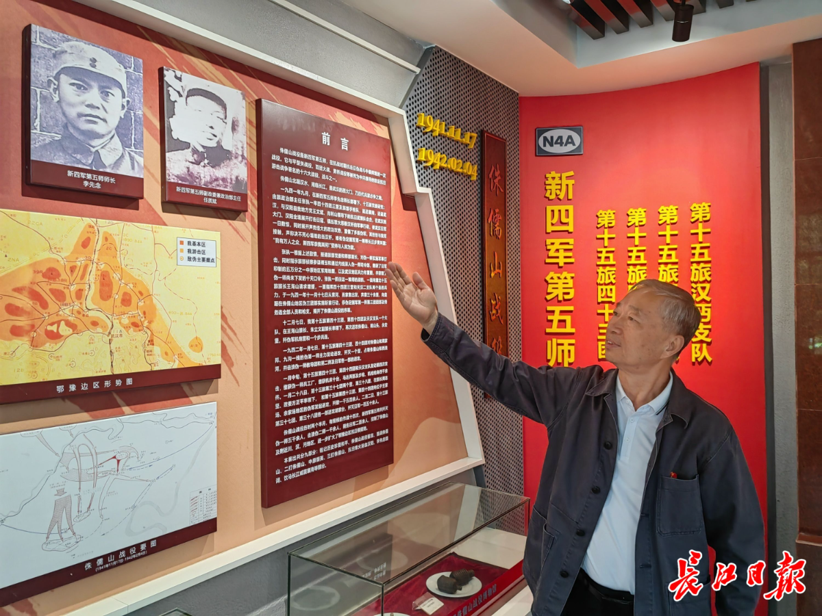 一边走一边指着展陈泛黄的老照片,付建桥向记者介绍道:“1941年11月至1942年2月,侏儒山战役历经14次大小战斗,共歼伪军5000余人,其中俘虏伪军950余人,毙伤日军200余人,控制了侏儒山及其附近地区,扩大了豫鄂边区抗日根据地,为尔后进军襄河以南地区创造了有利条件。”