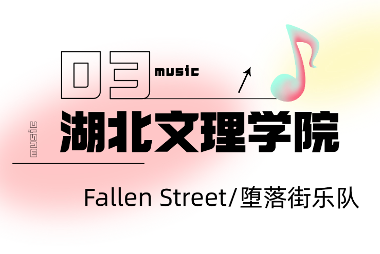 “Fallen Street/堕落街乐队”2023年9月组建于湖北文理学院。因乐队成员长期聚集在文理学院旁边的“堕落街”排练演出,故乐队名称“堕落街”乐队。风格有时摇滚有时流行,先后在文理学院举办过“摇滚派对act.1” “BASKET CASE BAND LIVE”等乐队演出活动,曾受邀参加过襄阳各类乐队演出活动。演出经验丰富、舞台呈现完整。