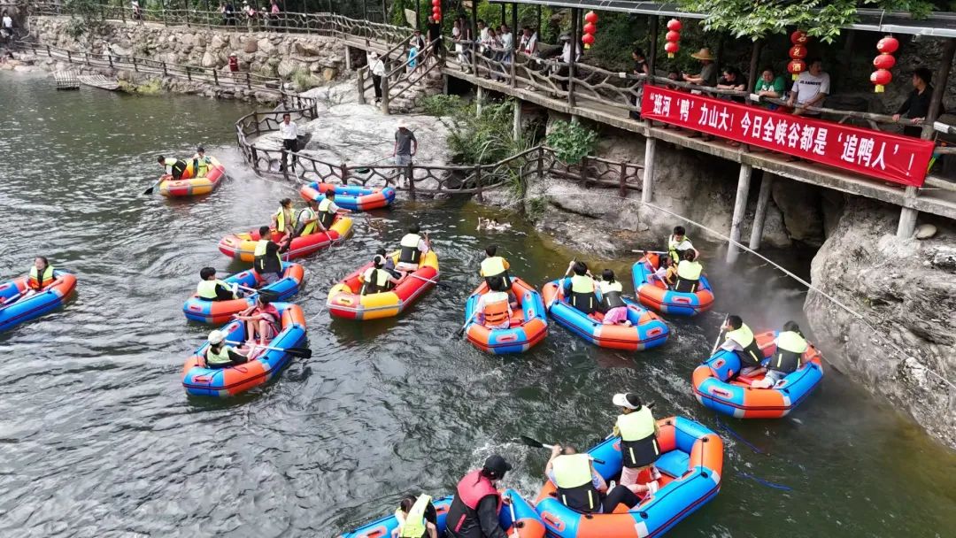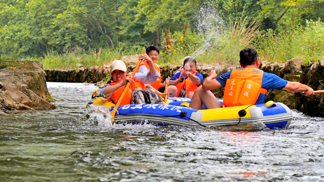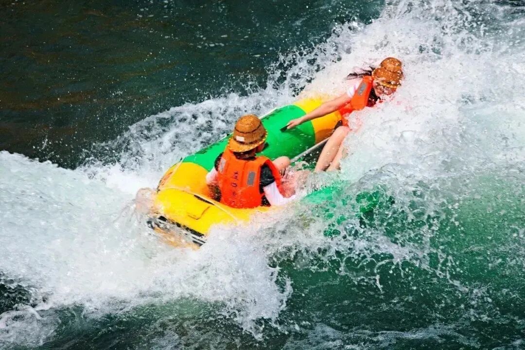 全程8公里的漂流路线,时而激流勇进,心跳加速;时而平缓悠然,尽赏两岸葱茏。景区创新推出“漂流+烧烤”组合,让刺激体验与美食享受完美融合。