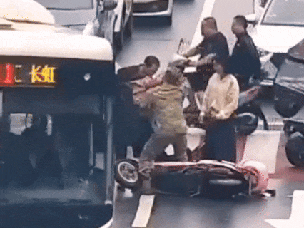 电动车瞬间失去平衡,