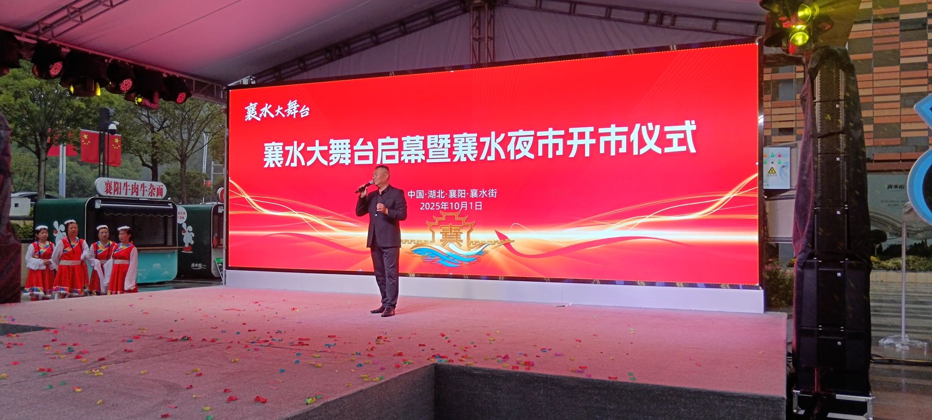 10月1日,襄水大舞台启幕暨襄水夜市开市仪式在襄阳市襄水之畔隆重举行,标志着襄水“演艺+夜市+活动”“街台一体”文旅项目正式亮相,为襄阳的夜晚增添了新的活力与魅力。