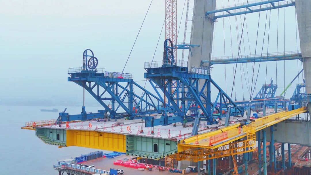 伍粤是项目现场的一名技术人员,这个国庆,他的“假期”全在工地上。他戴着安全帽,手里拿着图纸,不时走到施工点前,和工人交流技术细节。“目前大桥南岸主塔已经全部完成,现在进入上部构造施工,按照进度,年底就能完成边跨整体落梁和边跨合龙。”说起项目进展,他的眼里满是期待。对他而言,看着大桥一点点“成长”,从图纸变成现实,就是这个假期最有意义的事。