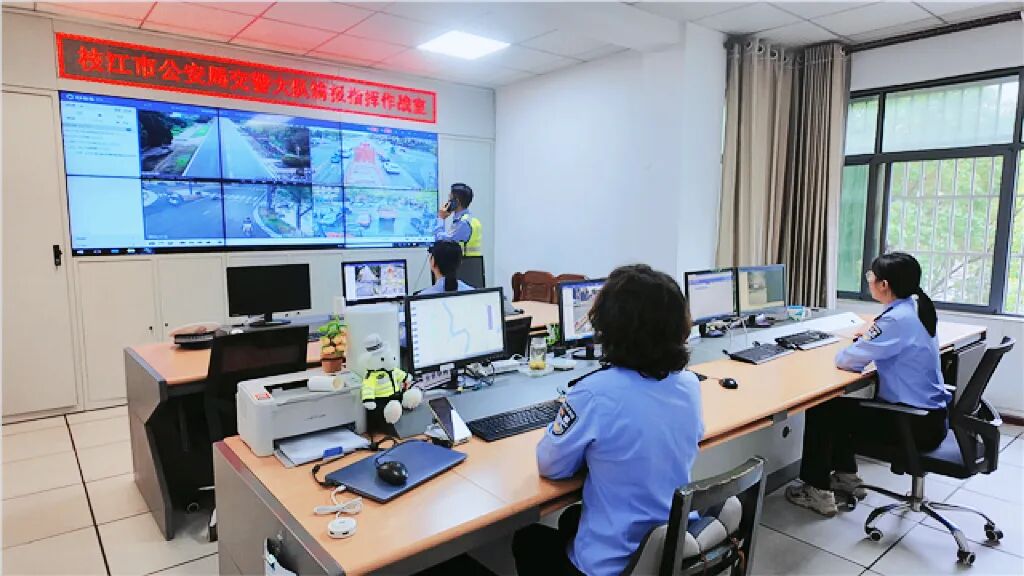 与此同时,在市公安局交通管理大队指挥中心,吕蒙正的同事们正紧盯大屏幕。屏幕上,各主次干道、施工路段的实时画面不断切换。他们的目光紧紧锁定车流变化,发现拥堵迹象即刻通过对讲机通知现场交警调整疏导方案。