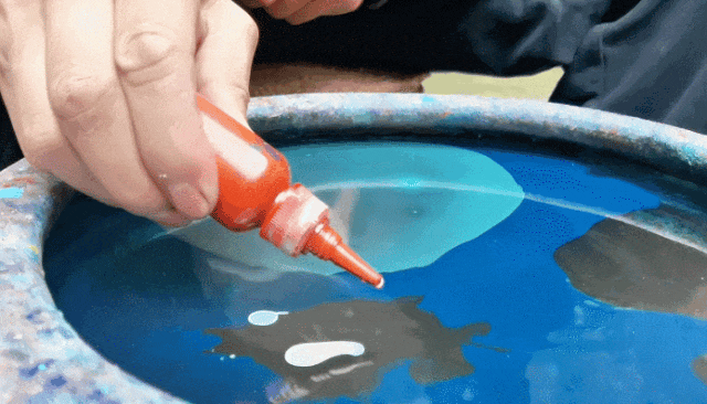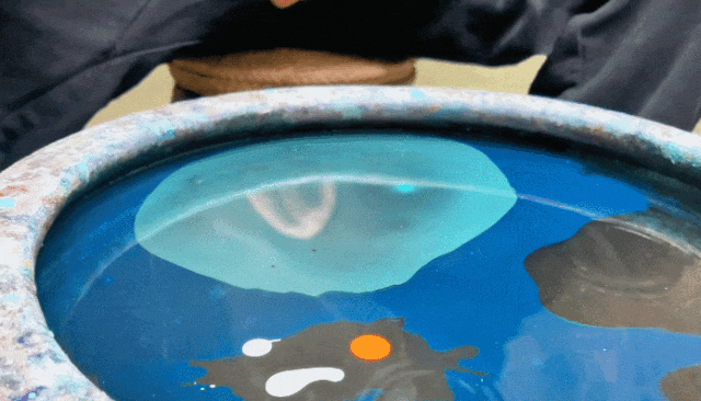 俯身凑近水面,对着漂浮的漆层轻轻吹一口气。气流带动漆纹缓缓流动,原本松散的色块会逐渐勾勒出更灵动的线条,像给水面 “画” 上了一笔写意留白。