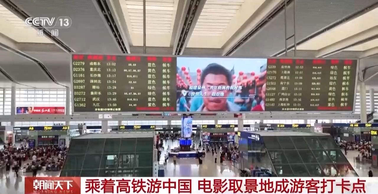 假期期间,乘坐高铁的不少旅客发现,列车播放的短视频内容焕然一新,屏幕中一段段精彩的电影片花,点燃了大家观影兴趣,更将影片中的取景地“种”进了游客心中。