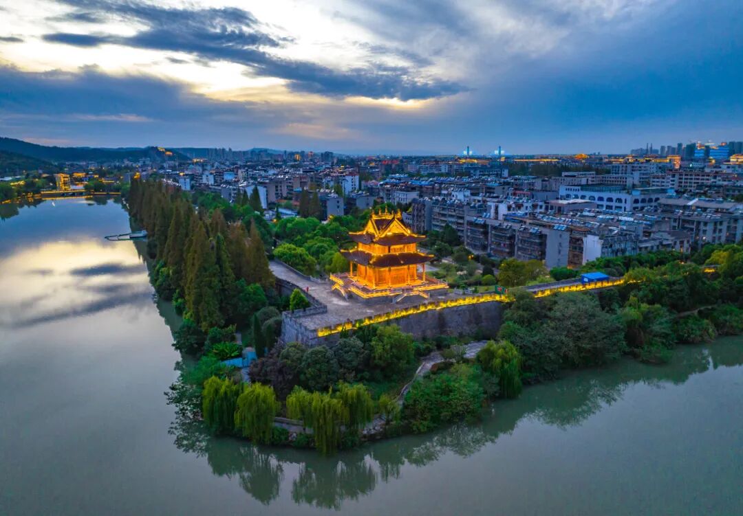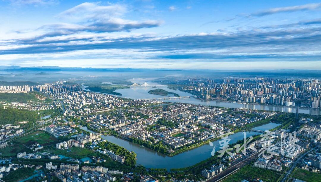 “一江碧水穿城过,十里青山半入城”
