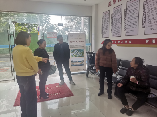 老人颤巍巍地握住工作人员的手,声音中带着几分慌乱:“我……我找不到回家的路了。”得知这一情况后,工作人员迅速行动起来,一边轻声细语地安抚老人情绪,一边小心翼翼地将老人搀扶至社区大厅内就座,并贴心地为老人递上一杯温热的开水,让这份突如其来的寒意中多了一丝温暖。