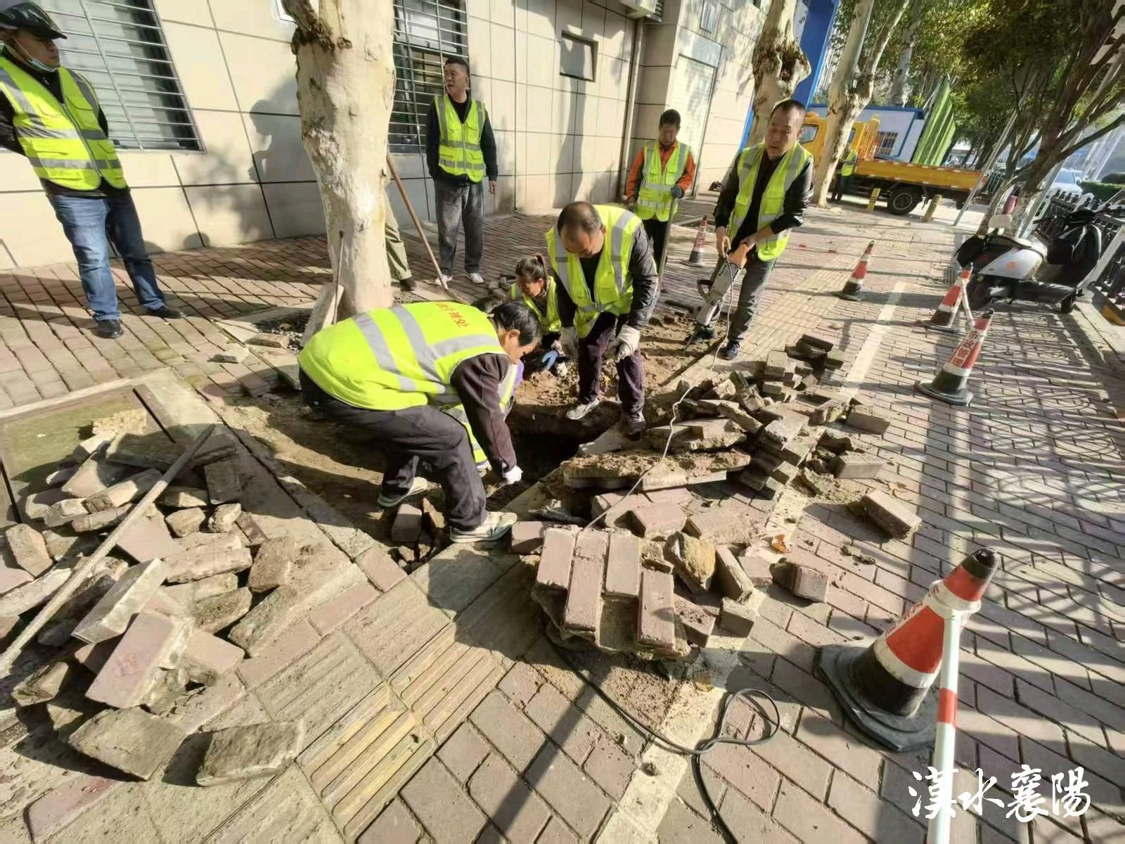 为确保安全,道路维护一所第一时间组织维修团队赶赴现场,设立醒目的安全警示围挡和警示标志,引导行人安全绕行,确保过往市民的通行安全。通过现场彻底开挖,精准定位空洞范围和成因。在整个维修过程中,施工人员克服了交通疏导、施工现场安全等压力,在最短的时间内完成了修复任务,从发现问题到恢复用时约4小时,共回填沙夹石4方,铺设人行道地砖8平方米。