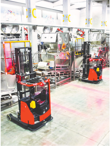 谷城县石花酒业智能化酿造中心,无人叉车正在作业。