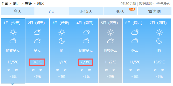 近期,襄阳的阳光“出勤率”颇高,持续晴朗干燥的天气格局,不过本周前中期有多股弱冷空气接连南下,气温将持续下降。