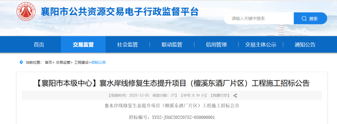 来源:襄阳市公共资源交易电子行政监督平台