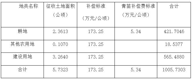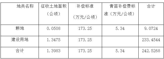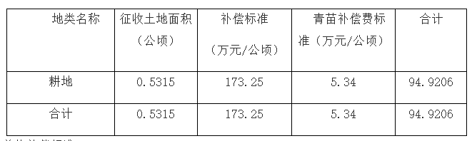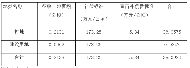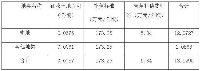 三、拟征收土地补偿标准