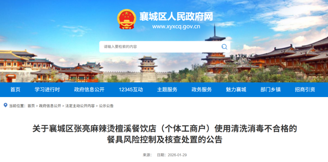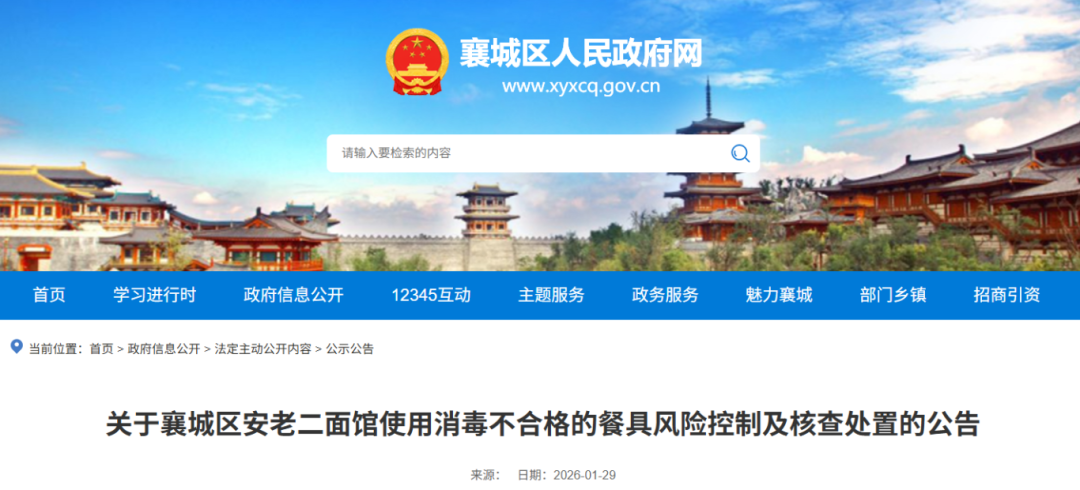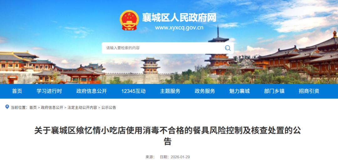 近日,襄城区人民政府网发布多条使用消毒不合格餐具的风险控制及核查处置情况公告,涉及多家面馆、小吃店等,一起来看。
