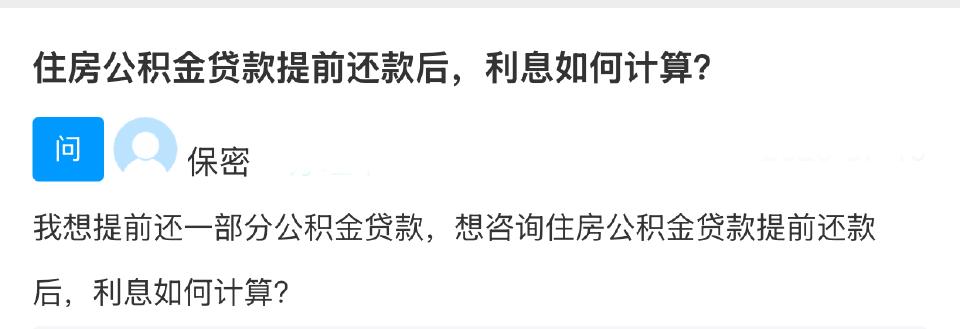 网络问政•问政策|住房公积金贷款提前还款后,利息如何计算?