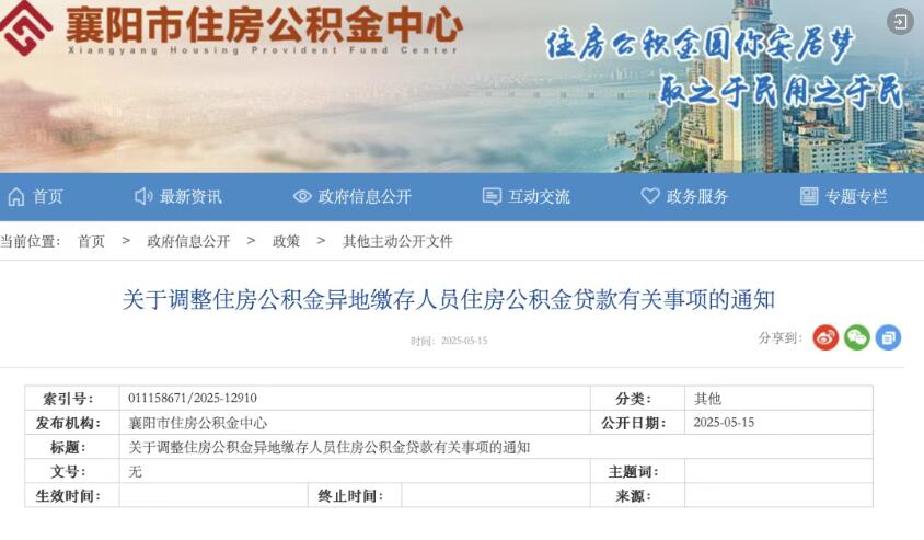 襄阳日报:@襄阳人:有新调整!涉及住房公积金