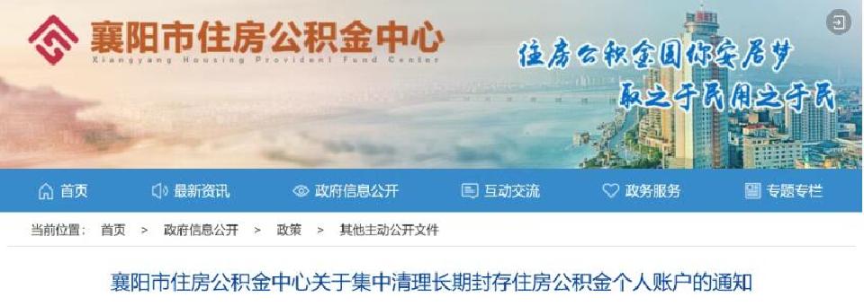 襄阳发布:我市开展住房公积金休眠账户专项清理