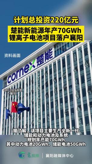 - 计划总投资220亿元,楚能新能源年产70GWh锂离子电池项目落户襄阳