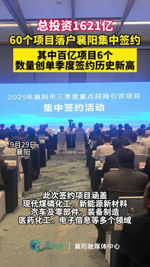 - 襄阳市三季度重点招商引资项目集中签约活动举行 60个项目总投资1621亿元